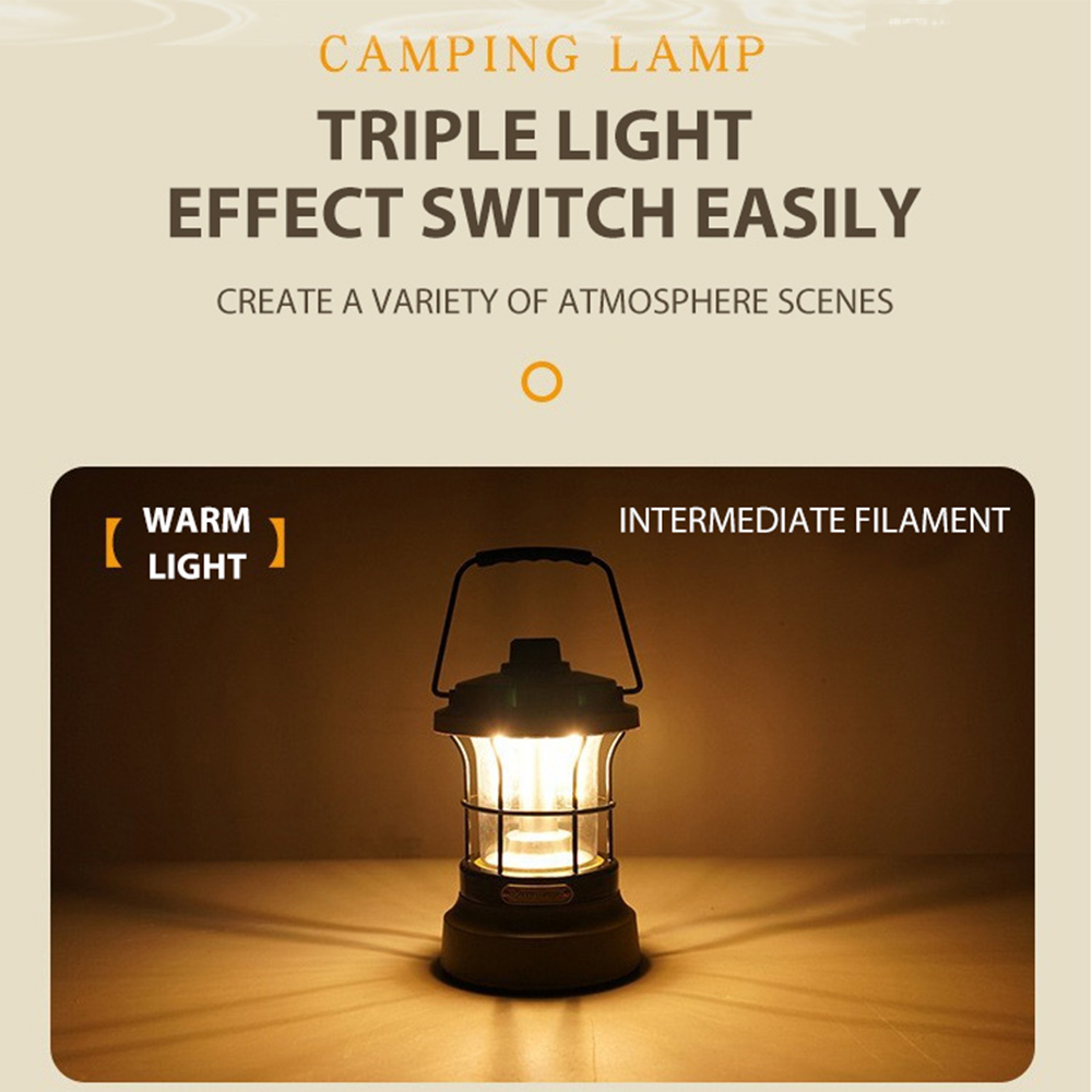 This camping light features a retro-inspired design that adds a touch of nostalgia to your outdoor adventures. Retro lantern aesthetics combine with modern technology, making it a stylish and functional accessory. It blends seamlessly into any camping environment or outdoor decor, enhancing the overall experience.