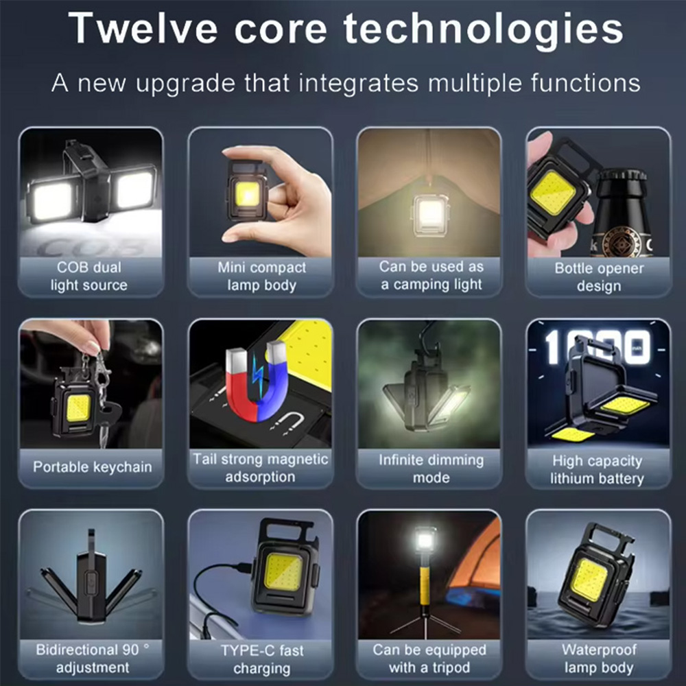 Reversible Foldable Mini Flashlight Keychain. Building on the success of our popular single-sided COB keychain lights, this new model is designed to offer even more functionality and convenience.